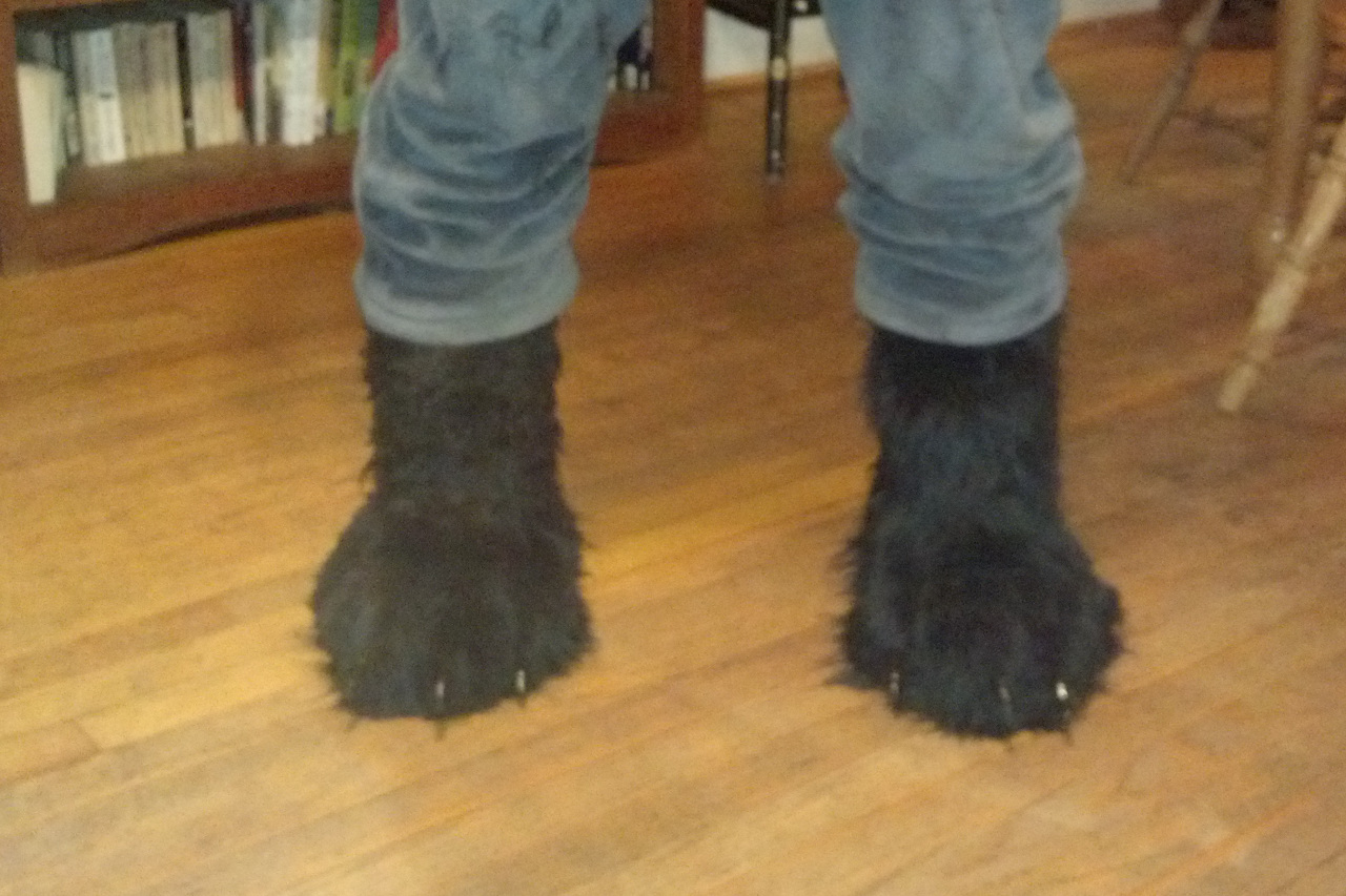 Now I had a basic design. I knew how to proceed with shaping and furring, but I wasn’t sure about the claws. I had previously messed around with paws for some feety pajamas and some slippers with claws. For the pajamas, I made the claws from Sculpy, which I sealed and then painted. I tried steel rod ground to claw-shape for the slippers. Neither was ideal, so then I decided to cast them in resin. I’d never done that before, so I had to learn how. Here is what I did: